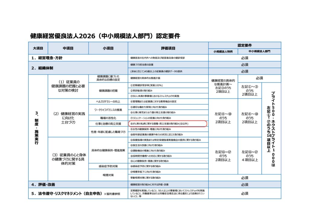 (参考:健康経営優良法人2026(中小規模法人部門)認定要件より)