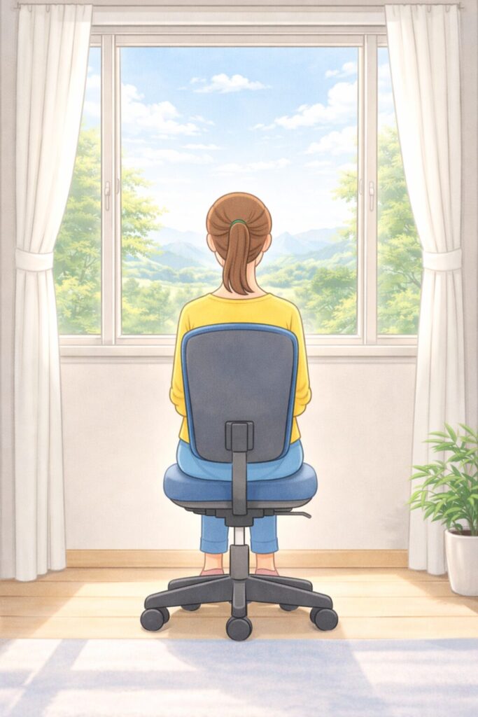 短い休憩でも、目を閉じたり遠くを見たりするだけで、疲れのたまり方が変わります。