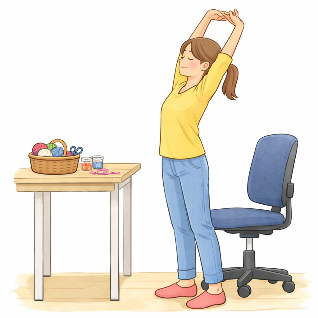 ハンドメイドをしながら肩こりを防ぐには、作業姿勢や環境を少し工夫することが大切です。
