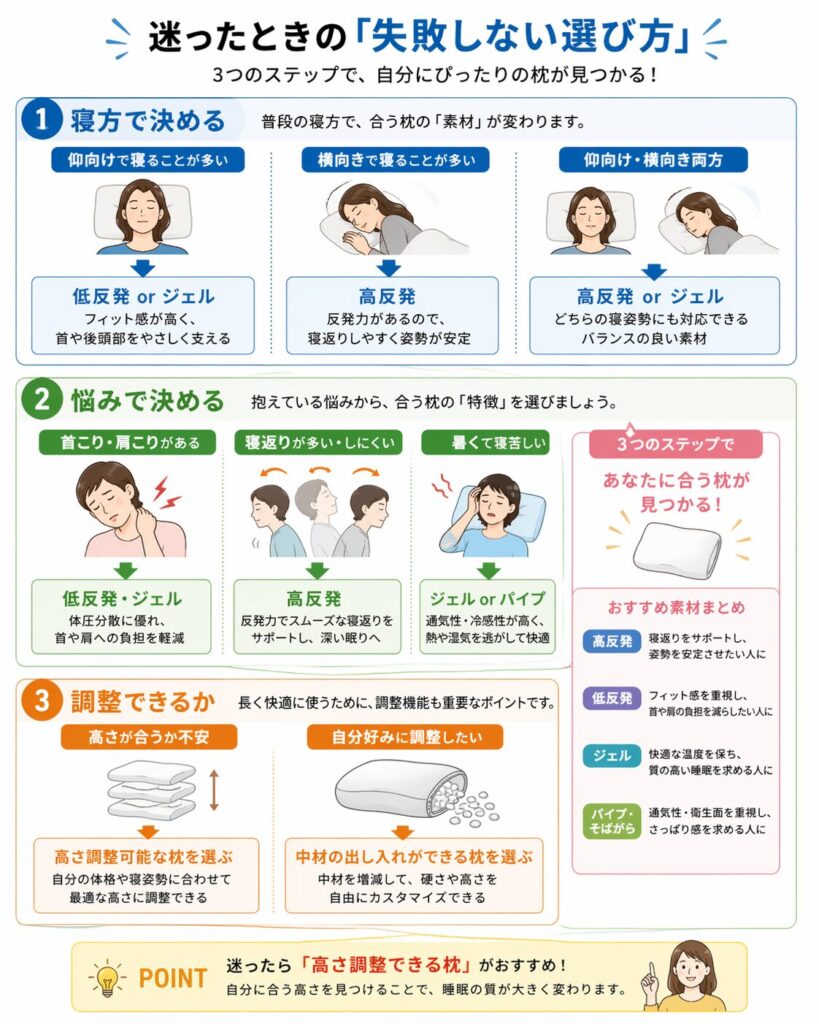 この記事では、後悔しない枕の正しい選び方や、2026年おすすめメーカー5選、悩みに合わせた枕の選び方などを分かりやすくご紹介します。